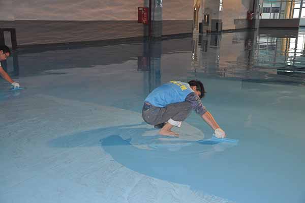 5)環氧膩子固化后,施工環氧自流平面漆。