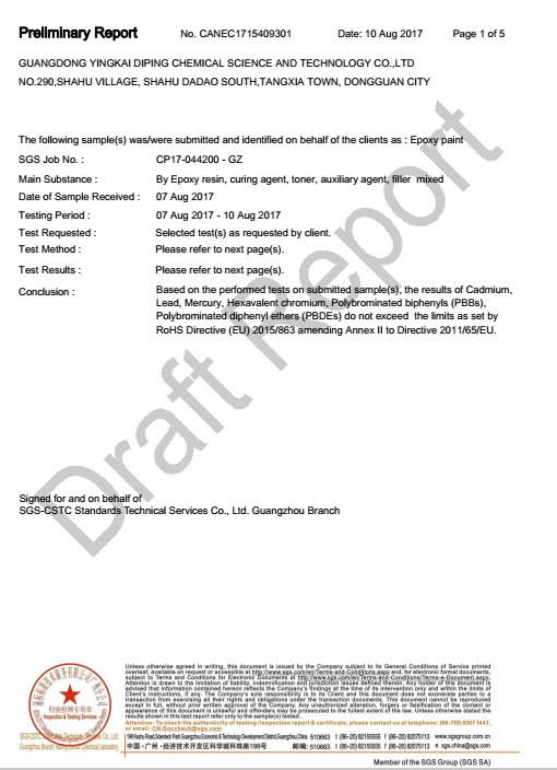 盈凱地坪(品牌:盈爾澳)是地坪漆行業知名地坪涂料生產企業,每年都會對地坪漆、固化劑、罩光等一系列產品進行檢測,符合國際出口標準。