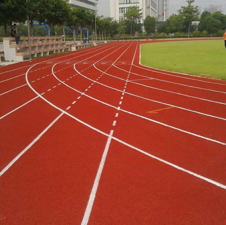 混合跑道的材料含聚氨酯更多,在比較大的體育場和大中專眼小都比較用的到。