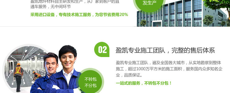 盈凱地坪工程公司從事現代化企業所需要的各類配套地坪研發,設計,生產,銷售,施工為一體的工程服務公司,專業的施工隊伍, 經過十多年的經驗積磊,不斷努力,不斷創新,現公司可承接各類維修整改工程一體的各類工程,防水工程,無塵隔墻工程,地面工程,保證生產環境的相關性緊密,為客戶周密考慮,以免引起相關客戶之間的責任推卸,讓您的裝修工程全程無憂!一體化的工程服務。 | ![]() |
